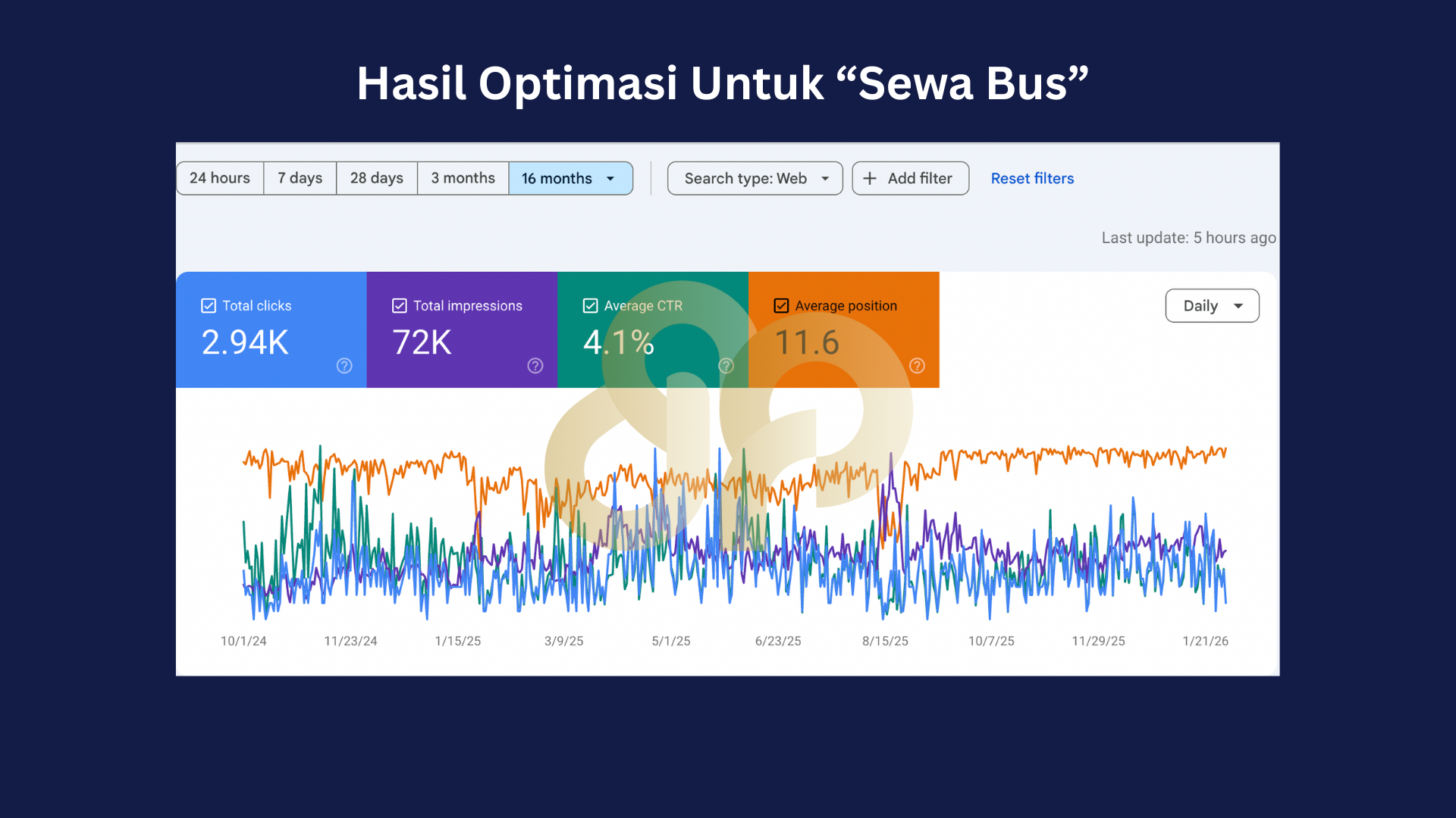 Kami menyediakan layanan lengkap SEO, Website development, paids ads, artikel, social media management, hingga optimasi Google Business Profile.
